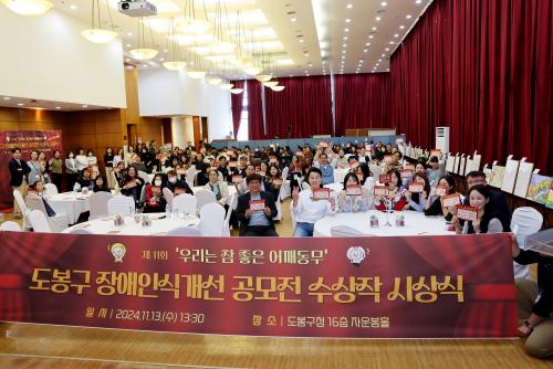 [½Åµ¿¾Æ¹æ¼Û µµºÀ±¸=À̽ŵ¿±âÀÚ] µµºÀ±¸´Â Áö³­ 11¿ù 13ÀÏ µµºÀ±¸Ã» 16Ãþ ÀÚ¿îºÀȦ¿¡¼­ 2024³â Àå¾ÖÀνݳ¼± °ø¸ðÀü ¼ö»óÀÛ ½Ã»ó½ÄÀ» °³ÃÖÇß´Ù. À̳¯ ½Ã»ó½ÄÀº ¼ö»óÀÚ 28¸íÀÌ Âü¼®ÇÑ °¡¿îµ¥ ÃàÇϰø¿¬, ¼ö»óÀÛ ¿µ»ó »ó¿µ, ¼ö»óÀÛ(¼öÇÊ) ³¶µ¶, »óÀå ¼ö¿©½Ä µîÀÌ ÁøÇàµÆ¡¦
