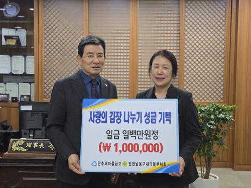 [½Åµ¿¾Æ¹æ¼Û ÀÎõ= À±¹Î½Ä±âÀÚ] ÀÎõ½Ã ³²µ¿±¸ »õ¸¶À»ºÎ³àȸ´Â ÀÎõ¸¸¼ö»õ¸¶À»±Ý°í(ÀÌ»çÀå À̹®±³)·ÎºÎÅÍ ±èÀå ³ª´® Çà»ç¸¦ À§ÇÑ ÈÄ¿ø±Ý 100¸¸ ¿øÀ» Àü´Þ¹Þ¾Ò´Ù°í ÀüÇß´Ù. ³²µ¿±¸ »õ¸¶À»ºÎ³àȸ´Â À̳¯ ¹ÞÀº ÈÄ¿ø±ÝÀ¸·Î »õ¸¶À»È¸¿ø 100¿© ¸í°ú ÇÔ²² »ç¶ûÀÇ ±èÀå ´ã¡¦