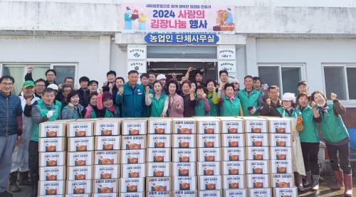 [½Åµ¿¾Æ¹æ¼Û °æ³²ÇÔ¾È=À̽ŵ¿±âÀÚ] ÇԾȱº Ä¥¿øÀ¾Àº Áö³­ 21ÀÏ Ä¥¿øÀ¾ »õ¸¶À»ÇùÀÇȸ, ºÎ³àȸ ȸ¿ø 40¿© ¸íÀÌ Âü¼®ÇÑ °¡¿îµ¥ ¡®»ç¶ûÀÇ ±èÀå±èÄ¡ ³ª´©±â¡¯ Çà»ç¸¦ °¡Á³´Ù. À̹ø Çà»ç´Â °í¹°°¡ µîÀÇ ¿µÇâÀ¸·Î ¾î·Á¿òÀ» °Þ´Â Ãë¾à°èÃþ ÀÌ¿ôµé¿¡°Ô ±èÀå ³ª´®À¸·Î µû¶æÇÑ¡¦