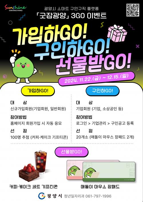 [½Åµ¿¾Æ¹æ¼ÛÀü³²±¤¾ç=¹Ú±¤¿Á±âÀÚ] ±¤¾ç½Ã´Â ÀÏÀÚ¸® Á¾ÇÕ Æ÷ÅлçÀÌÆ®ÀÎ ½º¸¶Æ® ±¸Àα¸Á÷ Ç÷§Æû ¡®±ÂÀⱤ¾ç¡¯ Ȱ¼ºÈ­¸¦ À§ÇØ 3GO(°¡ÀÔÇÏGO!±¸ÀÎÇÏGO!¼±¹°¹ÞGO!) À̺¥Æ®¸¦ ÃßÁøÇÑ´Ù°í 21ÀÏ ¹àÇû´Ù. À̹ø À̺¥Æ®´Â 11¿ù 22ÀÏ(±Ý)ºÎÅÍ 12¿ù 15ÀÏ(ÀÏ)±îÁö ±â¾÷ȸ¿ø°ú ½Å±Ô¡¦