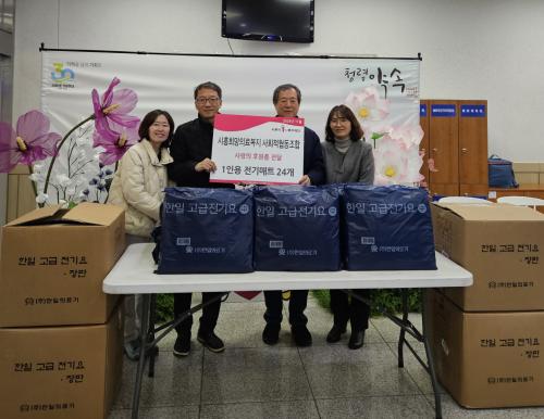 [½Åµ¿¾Æ¹æ¼Û ½ÃÈï½Ã=À̽ŵ¿±âÀÚ] ½ÃÈïÈñ¸ÁÀǷẹÁö»çȸÀûÇùµ¿Á¶ÇÕ´Â Áö³­ 21ÀÏ ¸ÅÈ­µ¿ ÇàÁ¤º¹Áö¼¾ÅÍ(µ¿Àå ¹Î°æÇå)¿¡ ¹æ¹®ÇØ Àü±â¸ÅÆ® 24°³¸¦ Àü´ÞÇß´Ù. ½ÃÈïÈñ¸ÁÀǷẹÁö»çȸÀûÇùµ¿Á¶ÇÕÀº °øÀÍÀ» ¸ñÀûÀ¸·Î Á¶ÇÕ¿ø°ú ÀÇ·áÀÎÀÌ Çùµ¿ÇÏ¿© ÀÇ·á»ç¾÷¼Ò, µ¹º½»ç¾÷ ¿î¿µ ¹×¡¦