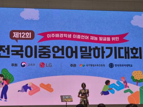 [½Åµ¿¾Æ¹æ¼Û Àü³²=À̽ŵ¿±âÀÚ] ±³À°ºÎ¿Í ¿¤Áö(LG)°¡ ÁÖÃÖÇÏ°í ±¹°¡Æò»ý±³À°ÁøÈï¿ø°ú Çѱ¹¿Ü±¹¾î´ëÇб³°¡ ÁÖ°üÇÏ´Â Á¦12ȸ Àü±¹ÀÌÁß¾ð¾î¸»Çϱ⠴ëȸ°¡ 11¿ù 23ÀÏ(Åä) LG»çÀÌ¾ð½ºÆÄÅ©¿¡¼­ °³ÃֵǾú´Ù. Àü±¹ÀÌÁß¾ð¾î¸»Çϱ⠴ëȸ´Â ÀÌÁÖ¹è°æÇлýµéÀÇ ÀÌÁß¾ð¾îÀç´ÉÀ» ¡¦