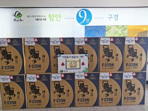 [½Åµ¿¾Æ¹æ¼Û °æ³²ÇÔ¾È=À̽ŵ¿±âÀÚ] ÇԾȱº ±ººÏ¸é À̹®¼® ¸éÀåÀº EPS ÄÚ¸®¾Æ(ÁÖ) Á¶Ã¶·¡ ´ëÇ¥°¡ °ü³» Àú¼Òµæ°èÃþÀ» À§ÇØ ³ëÀÎȰµ¿º¸Á¶±â 30´ë(360¸¸¿ø »ó´ç)¸¦ ±âºÎÇß´Ù°í ¹àÇû´Ù. EPS ÄÚ¸®¾Æ(ÁÖ) Á¶Ã¶·¡ ´ëÇ¥´Â ±ººÏ¸é ½Å⸶À» Ãâ½ÅÀ̸ç, °ÇÃà¿ë ´Ü¿­Àç ¹× ¹ßÆ÷Æú¡¦