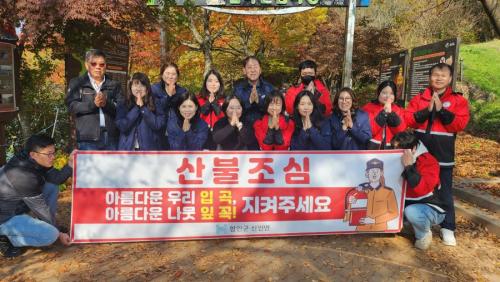 [½Åµ¿¾Æ¹æ¼Û °æ³²ÇÔ¾È=À̽ŵ¿±âÀÚ] ÇԾȱº »êÀθ鿡¼­´Â Áö³­ 2ÀÏ °ü±¤°´°ú ÀÔ»êÀÚÀÇ Áõ°¡¿¡ µû¶ó »êºÒ À§Ç輺À» ¾Ë¸®°í ¹ß»ýÀ» ¹æÁöÇϱâ À§ÇØ À԰¸³°ø¿ø ÀÏ¿ø¿¡¼­ »êºÒ¿¹¹æ Ä·ÆäÀÎÀ» ½Ç½ÃÇß´Ù. À̳¯ Ä·ÆäÀÎÀº ¡®¾Æ¸§´Ù¿î ¿ì¸® ÀÔ°î, ¾Æ¸§´Ù¿î ³ª¹µÀÙ ²À! ÁöÄÑÁÖ¡¦