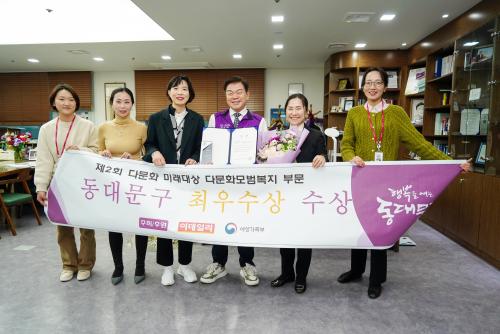 [½Åµ¿¾Æ¹æ¼Û µ¿´ë¹®±¸=À̽ŵ¿±âÀÚ] µ¿´ë¹®±¸°¡ ¡®2024 Á¦2ȸ À̵¥Àϸ® ´Ù¹®È­ ¹Ì·¡´ë»ó¡¯¿¡¼­ ´Ù¹®È­¸ð¹üº¹Áö ºÐ¾ß ÃÖ¿ì¼ö»óÀ» ¼ö»óÇß´Ù. À̵¥Àϸ® ´Ù¹®È­ ¹Ì·¡´ë»óÀº À̵¥Àϸ®°¡ ÁÖÃÖÇÏ°í ¿©¼º°¡Á·ºÎ°¡ ÈÄ¿øÇÏ´Â ½Ã»óÀ¸·Î, Áö³­ÇØ¿¡ ÀÌ¾î ¿ÃÇØ µÎ ¹øÂ°·Î ÁøÇàµÆ´Ù¡¦