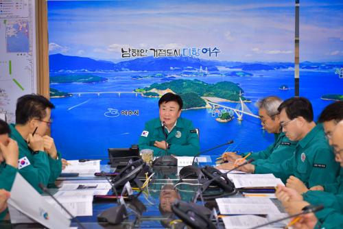 [½Åµ¿¾Æ¹æ¼ÛÀü³²¿©¼ö=±è±â³² ±âÀÚ] À±¼®¿­ ´ëÅë·ÉÀÇ Åº¾×¾ÈÀÌ Àǰá Á¤Á·¼ö ¹Ì´Þ·Î ºÎ°áµÈ °¡¿îµ¥, Á¤±â¸í ¿©¼ö½ÃÀåÀÌ °°Àº ³¯ ¿ÀÈÄ ½Ãû Àç³­»óȲ½Ç¿¡¼­ ±ä±Þ °£ºÎȸÀǸ¦ °®°í, ´ë½Ã¹Î ´ãÈ­¹®À» ¹ßÇ¥Çß´Ù. Á¤ ½ÃÀåÀº ´ãÈ­¹®¿¡¼­ ¡°À± ´ëÅë·ÉÀÇ À§ÇåÀû °è¾ö¼±Æ÷·Î¡¦