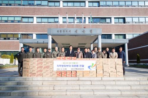 [½Åµ¿¾Æ¹æ¼Û ÀÎõ= À±¹Î½Ä±âÀÚ]¼­±¸ ÅëÇÕ¹æÀ§ÇùÀÇȸ(ÀÇÀå: °­¹ü¼® ¼­±¸Ã»Àå, ȸÀå: ÀÌâ¹è)¿¡¼­´Â Áö³­ 12¿ù 10ÀÏ ¼­±¸ 22°³ ¿¹ºñ±ºµ¿´ë¿¡¼­ ±Ù¹«Çϰí ÀÖ´Â À庴µéÀ» À§¹®¡¤°Ý·ÁÇϱâ À§ÇÑ À§¹®Ç°(130¸¸¿ø »ó´çÀÇ ¶ó¸é 80¹Ú½º) Àü´Þ½ÄÀ» °¡Á³´Ù. Àü´Þ½Ä¿¡ Âü¼®ÇÑ ¡¦