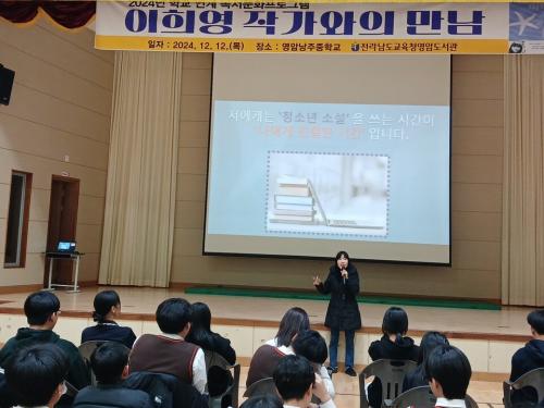 [½Åµ¿¾Æ¹æ¼Û Àü³²¿µ¾Ï=À̽ŵ¿±âÀÚ] Àü¶ó³²µµ±³À°Ã»¿µ¾Ïµµ¼­°ü(±¸. ¿µ¾Ï°ø°øµµ¼­°ü)Àº 12¿ù 12ÀÏ ¿µ¾Ï³¶ÁÖÁßÇб³ ÇлýµéÀ» ´ë»óÀ¸·Î <¼Ò±Ý ¾ÆÀÌ> ÀÌÈñ¿µ ÀÛ°¡¿ÍÀÇ ¸¸³²À» ¿î¿µÇß´Ù. Çб³ ¿¬°è µ¶¼­¹®È­ÇÁ·Î±×·¥ <µµ¼­°ü°ú ÇÔ²²ÇÏ´Â ÀÛ°¡¿ÍÀÇ ¸¸³²>À» ¿î¿µÇϰí ÀÖ´Â ¡¦