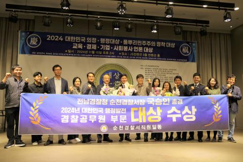 [½Åµ¿¾Æ¹æ Àü³²¼øÃµ=¹Ú±¤¿Á±âÀÚ] ±¹½ÂÀÎ ¼øÃµ°æÂû¼­ÀåÀº Áö³­ 15ÀÏ ±¤ÁÖ¿¡¼­ ¿­¸° Çѱ¹¾ð·Ð¹Ìµð¾î±×·ì(°ø¹ý´Üü)ÀÌ ÁÖ°üÇÏ´Â ½Ã»ó½Ä¿¡¼­ ¿ÃÇØÀÇ °æÂû°ø¹«¿ø ºÎ¹® ´ë»óÀ» ¼ö»óÇß´Ù°í ¹àÇû´Ù. Çѱ¹¾ð·Ð¹Ìµð¾î±×·ìÀº ÇÑ ÇØ µ¿¾È Á¤Ä¡, °æÁ¦, »çȸ µî °¢ ºÐ¾ß¿¡¼­ Ź¿ùÇÑ¡¦