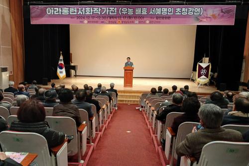 [½Åµ¿¾Æ¹æ¼Û °æ³²ÇÔ¾È=À̽ŵ¿±âÀÚ] ÇԾȹ®È­¿øÀº Áö³­ 17ÀÏ ¿ÀÀü 10½Ã ÇԾȹ®È­¿ø ´ë°ø¿¬Àå¿¡¼­ ¿ì³ó ¹èÈ¿ ¼­¿¹ ¸íÀÎÀÇ ÃÊû °­¿¬À» ½ÃÀÛÀ¸·Î ¾Æ¶óÈ«·Ã ¼­È­ ÀÛ°¡ Àü½Ãȸ¸¦ ¿­¾ú´Ù. À̳¯ °³È¸½Ä¿¡´Â Çã´ë¾ç ÇԾȺ৬ö, À̸¸È£ ÇԾȱºÀÇȸ ÀÇÀåÀ» ºñ·ÔÇØ µµÀÇ¿ø, ÇÔ¡¦