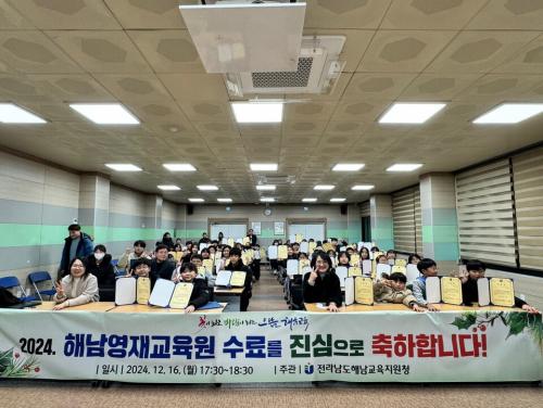 [½Åµ¿¾Æ¹æ¼Û Àü³²Çس²=À̽ŵ¿±âÀÚ] ÇØ³²±³À°Áö¿øÃ»Àº 2024³â 12¿ù 16ÀÏ, ÇØ³²¿µÀç±³À°¿ø ¼ö·á½ÄÀ» ÁøÇàÇß´Ù. À̹ø ¼ö·á½Ä¿¡´Â ¿µÀç±³À°¿ø Çлý, Çкθð, Áöµµ±³»ç µî 100¿© ¸íÀÌ Âü¼®ÇßÀ¸¸ç, ÇлýµéÀÇ ³ë·Â°ú ¼ºÀåÀ» ÃàÇÏÇÏ°í ¹Ì·¡ÀÇ Ã¢ÀÇÀû ÀÎÀç·Î¼­ÀÇ °¡´É¼ºÀ» ÀÀ¿øÇÏ¡¦