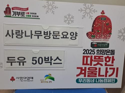 [½Åµ¿¾Æ¹æ¼Û ÀºÆò±¸=À̽ŵ¿±âÀÚ] ÀºÆò±¸ ºÒ±¤1µ¿Àº Áö³­ 18ÀÏ »ç¶û³ª¹«¹æ¹®¿ä¾ç¼¾ÅͰ¡ Áö¿ª »çȸ¿¡ µû¶æÇÑ ³ª´®À» ½ÇõÇϱâ À§ÇØ µÎÀ¯ 50¹Ú½º¸¦ ±âºÎÇß´Ù°í ¹àÇû´Ù. À̹ø ±âºÎ´Â ´ë»ç¶û³ª¹«¹æ¹®¿ä¾ç¼¾ÅÍÀÇ ÃëÁö¿¡ ¸ÂÃç °ü³» µ¶°Å ¾î¸£½Å°ú Àú¼Òµæ °¡Á¤À» ´ë»óÀ¸·Î °Ç¡¦