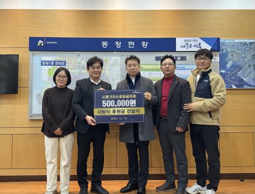 [½Åµ¿¾Æ¹æ¼Û ½ÃÈï½Ã=À̽ŵ¿±âÀÚ] Á¤¿Õ1µ¿ ÇàÁ¤º¹Áö¼¾ÅÍ´Â Áö³­ 18ÀÏ, ½ÃÈïÅ©¸®½ºÅäÆÛ°ñÇÁȸ·ÎºÎÅÍ Á¤¿Õ1µ¿ ³» Ãë¾à°èÃþÀ» À§ÇÑ ÈÄ¿ø±Ý 50¸¸¿øÀ» Àü´Þ¹Þ¾Ò´Ù. À̳¯ Àü´Þ½Ä¿¡´Â Á¤¿Õ1µ¿ Áö¿ª»çȸº¸ÀåÇùÀÇü ±èº´¼± °í¹®°ú ½ÃÈïÅ©¸®½ºÅäÆÛ°ñÇÁȸ ÀÌȲ¿ë ȸÀå, ±è¹Ìȯ ÃÑ¡¦