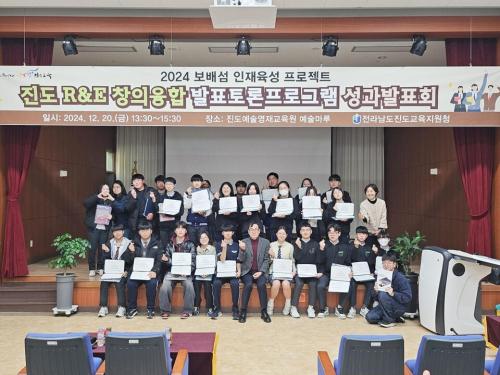 [½Åµ¿¾Æ¹æ¼Û Àü³²Áøµµ=À̽ŵ¿±âÀÚ] Àü¶ó³²µµÁøµµ±³À°Áö¿øÃ»Àº Áö³­ 12¿ù 20ÀÏ(±Ý) Áøµµ¿¹¼ú¿µÀç±³À°¿ø ¿¹¼ú¸¶·ç¿¡¼­ Çлý°ú ±³¿ø, ÇÁ·Î±×·¥ ¿î¿µÁøÀÌ Âü¼®ÇÑ °¡¿îµ¥ ¡¸Áøµµ R&E âÀÇ¡¤À¶ÇÕ ¹ßÇ¥Åä·Ð ÇÁ·Î±×·¥ Á¦4±â ¼º°ú¹ßǥȸ¡¹¸¦ °³ÃÖÇß´Ù. Áøµµ R&E âÀÇÀ¶ÇÕ ¹ßÇ¥¡¦