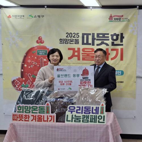 [½Åµ¿¾Æ¹æ¼Û ÀºÆò±¸=À̽ŵ¿±âÀÚ] ÀºÆò±¸ ÀÀ¾Ï3µ¿Àº Áö³­ 19ÀÏ ÁÖ½Äȸ»ç ¿Ãºê·£µå µ¿±¤ÀÌ Èñ¸Á¿Âµ¹ µû¶æÇÑ °Ü¿ï³ª±â ¼º±Ý¡¤Ç°À» Àü´ÞÇß´Ù°í ¹àÇû´Ù. »çȸÀû±â¾÷ÀÎ ÁÖ½Äȸ»ç ¿Ãºê·£µå µ¿±¤Àº Àú¼Òµæ Ãë¾à°èÃþÀÌ µû¶æÇÑ °Ü¿ïÀ» º¸³»´Â µ¥ µµ¿òÀ» ÁÖ±â À§ÇØ ¼º±Ý 5½Ê¸¸ ¿ø¡¦