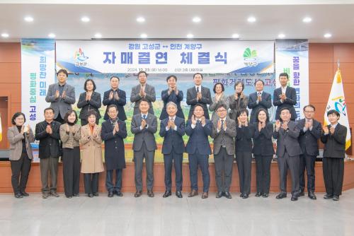 [½Åµ¿¾Æ¹æ¼Û ÀÎõ= À±¹Î½Ä±âÀÚ] ÀÎõ±¤¿ª½Ã °è¾ç±¸(±¸Ã»Àå À±È¯)´Â 23ÀÏ °­¿øÆ¯º°ÀÚÄ¡µµ °í¼º±º°ú °í¼º±ºÃ» ´ëȸÀǽǿ¡¼­ µÎ µµ½Ã °£ ÀڸŰῬ Çù¾àÀ» ü°áÇß´Ù°í ¹àÇû´Ù. À̳¯ ü°á½ÄÀº À±È¯ °è¾ç±¸Ã»Àå°ú ÇÔ¸íÁØ °í¼º±º¼ö µî 40¿© ¸íÀÌ Âü¼®ÇÑ °¡¿îµ¥ µÎ µµ½ÃÀÇ È«¡¦