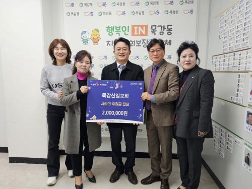 [½Åµ¿¾Æ¹æ¼Û ½ÃÈï½Ã=À̽ŵ¿±âÀÚ] ¸ñ°¨½ÅÀϱ³È¸°¡ Áö³­ 26ÀÏ ¸ñ°¨µ¿ ÇàÁ¤º¹Áö¼¾Å͸¦ ¹æ¹®ÇØ 200¸¸ ¿øÀÇ ÈÄ¿ø±ÝÀ» ±âŹÇß´Ù. À̳¯ ±âŹµÈ ÈÄ¿ø±ÝÀº ¼ºÅºÀýÀ» ¸ÂÀÌÇØ ±³ÀεéÀÌ ³½ Çå±ÝÀÇ ÀϺηÎ, ¸ñ°¨µ¿¿¡ °ÅÁÖÇÏ´Â Àú¼Òµæ Ãë¾à°èÃþ°ú º¹Áö»ç°¢Áö´ë Áö¿øÀ» À§ÇØ »ç¿ëµÉ ¡¦