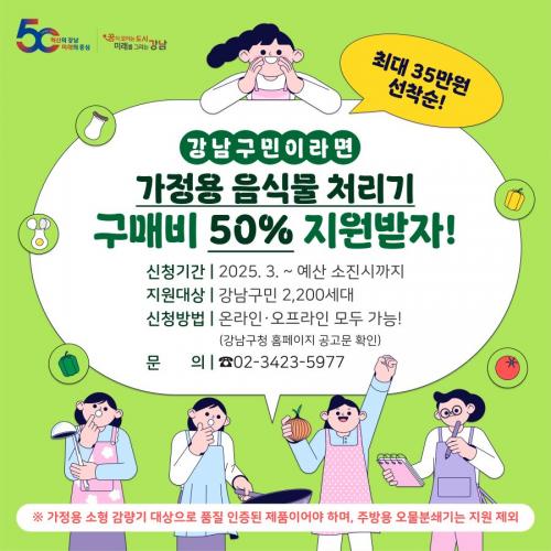 [½Åµ¿¾Æ¹æ¼Û °­³²±¸=À̽ŵ¿±âÀÚ] ²ÞÀÌ ¸ðÀÌ´Â µµ½Ã, ¹Ì·¡¸¦ ±×¸®´Â °­³²±¸°¡ ¿À´Â 24ÀϺÎÅÍ ¼­¿ï½Ã ÀÚÄ¡±¸ Áß ÃÖ´ë ±Ô¸ð·Î °¡Á¤¿ë À½½Ä¹°Ã³¸®±â(¼ÒÇü°¨·®±â) ±¸¸Åºñ¿ë Áö¿ø»ç¾÷À» ½Ç½ÃÇÑ´Ù. ±¸´Â ÃÖ±Ù °¡¿­¡¤°ÇÁ¶¡¤ºÐ¼â ¹× ¹Ì»ý¹° ¹ßÈ¿ µîÀÇ °úÁ¤À» °ÅÃÄ À½½Ä¹° ¾²·¹¡¦