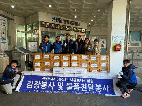 [½Åµ¿¾Æ¹æ¼Û ½ÃÈï½Ã=À̽ŵ¿±âÀÚ] ±¹Á¦·ÎŸ¸®3690Áö±¸ ½ÃÈïÁö¿ª ½ÃÈï·ÎŸ¸®Å¬·´(ÀÌÇÏ, ½ÃÈï·ÎŸ¸®Å¬·´)Àº Áö³­ 11¿ù 18ÀÏ ½Åõµ¿ ÇàÁ¤º¹Áö¼¾Å͸¦ ã¾Æ ±èÀå ±èÄ¡ 240kg¿Í ¶ó¸é 30»óÀÚ¸¦ Àü´ÞÇß´Ù. ƯÈ÷ ±èÀå±èÄ¡´Â ´çÀÏ À̸¥ ¾ÆÄ§ºÎÅÍ ½ÃÈï·ÎŸ¸®Å¬·´ ȸ¿øµé°ú °¡Á·¡¦