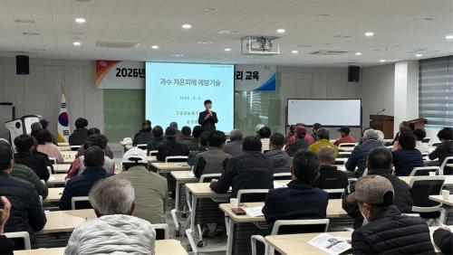 [½Åµ¿¾Æ¹æ¼Û °æ³²ÁøÁÖ=³²±Ã¿µ±â±âÀÚ] ÁøÁֽô Áö³­ 9ÀÏ ³ó¾÷±â¼ú¼¾ÅÍ¿¡¼­ °ü³» °ú¼ö Àç¹è ³ó¾÷ÀÎ 100¿© ¸íÀ» ´ë»óÀ¸·Î ¡®°ú¼ö Àú¿Â ÇÇÇØ ´ëÀÀ °ú¿ø°ü¸® ±³À°¡¯À» ÃßÁøÇß´Ù°í ¹àÇû´Ù. À̹ø ±³À°Àº ÃÖ±Ù ±âÈĺ¯È­·Î º½Ã¶ ÀÌ»óÀú¿Â Çö»óÀÌ Àæ¾ÆÁö¸é¼­ °ú¼ö °³È­±â Àú¿Â¡¦