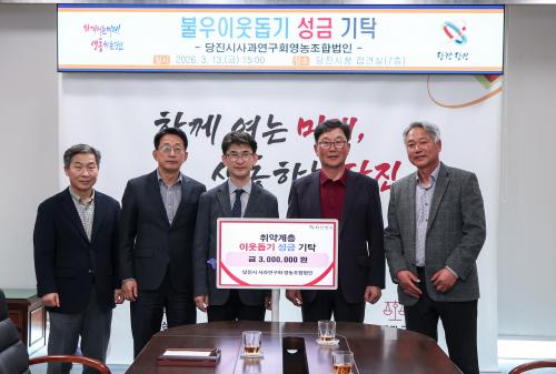 [½Åµ¿¾Æ¹æ¼Û=ÀÌÀçö±âÀÚ] ´çÁø½Ã´Â Áö³­ 13ÀÏ ´çÁø½Ã»ç°ú¿¬±¸È¸¿µ³óÁ¶ÇÕ¹ýÀÎ(´ëÇ¥ ÃÖ¼ºÅÂ)ÀÌ Áö¿ª ³» ¾î·Á¿î ÀÌ¿ôÀ» µ½±â À§ÇØ ¼º±Ý 300¸¸ ¿øÀ» ±âŹÇß´Ù°í 16ÀÏ ¹àÇû´Ù. ±âʽÄÀº ´çÁø½Ã»ç°ú¿¬±¸È¸¿µ³óÁ¶ÇÕ¹ýÀÎ ´ëÇ¥ ¹× °ü°èÀÚ°¡ Âü¿©ÇÑ °¡¿îµ¥ ´çÁø½Ãû¿¡¼­ °³ÃÖÇß¡¦