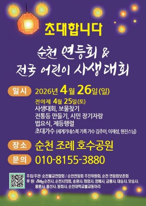 [½Åµ¿¾Æ¹æ¼Û ¼øÃµ=±è¿ëÈÆ ±âÀÚ] ºÒ±â 2570³â ºÎó´Ô ¿À½Å ³¯À» ¸Â¾Æ, ¼øÃµÀÇ ¹ãÀ» ÀÚºñÀÇ µîºÒ·Î ¼ö³õ´Â ¡®2026 ¼øÃµ ¿¬µîȸ¡¯°¡ ¿À´Â 26ÀÏ Á¶·ÊÈ£¼ö°ø¿ø ÀÏ¿ø¿¡¼­ È­·ÁÇÏ°Ô ¸·À» ¿Ã¸°´Ù. ¼øÃµ½Ã¿Í ¼øÃµºÒ±³¿¬ÇÕȸ°¡ ÁÖÃÖ¡¤ÁÖ°üÇÏ´Â À̹ø Çà»ç´Â ÁÖ¸»À» ¸Â¾Æ °ø¿øÀ»¡¦