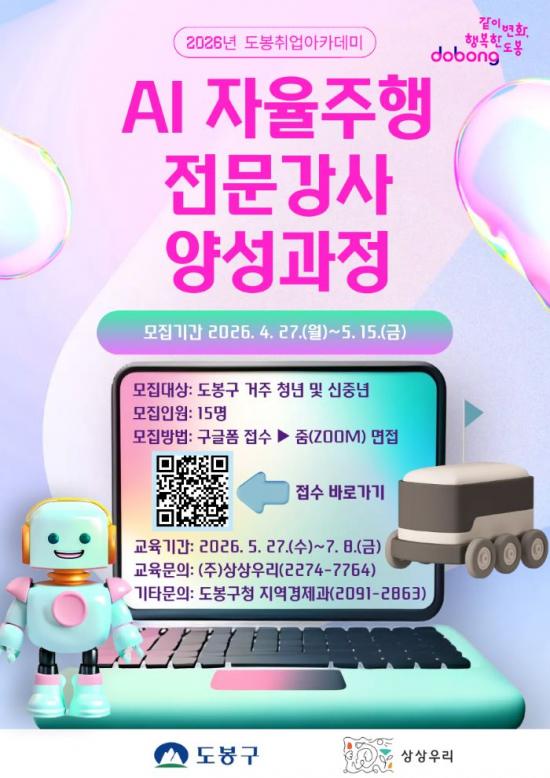 [½Åµ¿¾Æ¹æ¼Û µµºÀ±¸=À̽ŵ¿±âÀÚ] ¼­¿ï µµºÀ±¸°¡ ÀΰøÁö´É(AI) ÀÚÀ²ÁÖÇà ±â¼ú ½Ã´ë¸¦ ¼±µµÇÒ Àü¹® ÀηÂÀ» ¾ç¼ºÇÑ´Ù. ±¸´Â 5¿ù 27ÀϺÎÅÍ 7¿ù 8ÀϱîÁö ¡®ÀΰøÁö´É(AI) ÀÚÀ²ÁÖÇà Àü¹®°­»ç ¾ç¼º°úÁ¤¡¯À» ¿î¿µÇÑ´Ù°í ¹àÇû´Ù. ¹Ì·¡ ¸ðºô¸®Æ¼ »ê¾÷ÀÇ ÇÙ½É ÀÎÀ縦 Áö¿ª¿¡¼­¡¦